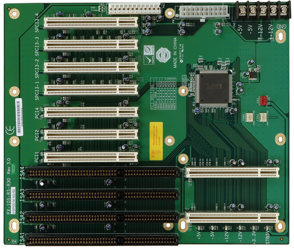 | PX-10S-RS-R50 | 10-slot backplane with 7 PCI slots via Pericom bridge IC and 3 ISA slots,RoHS |